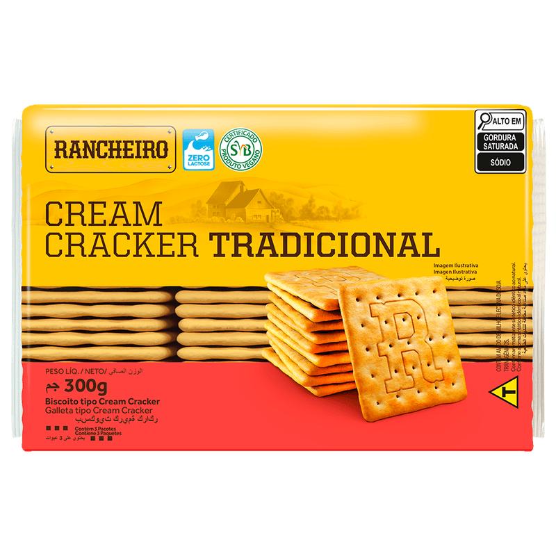 A Cream Cracker Rancheiro é duplamente laminada e conta com um sabor amanteigado, uma textura crocante que dissolve na boca e possui certificação vegana. Portanto, não possui nenhum derivado animal.